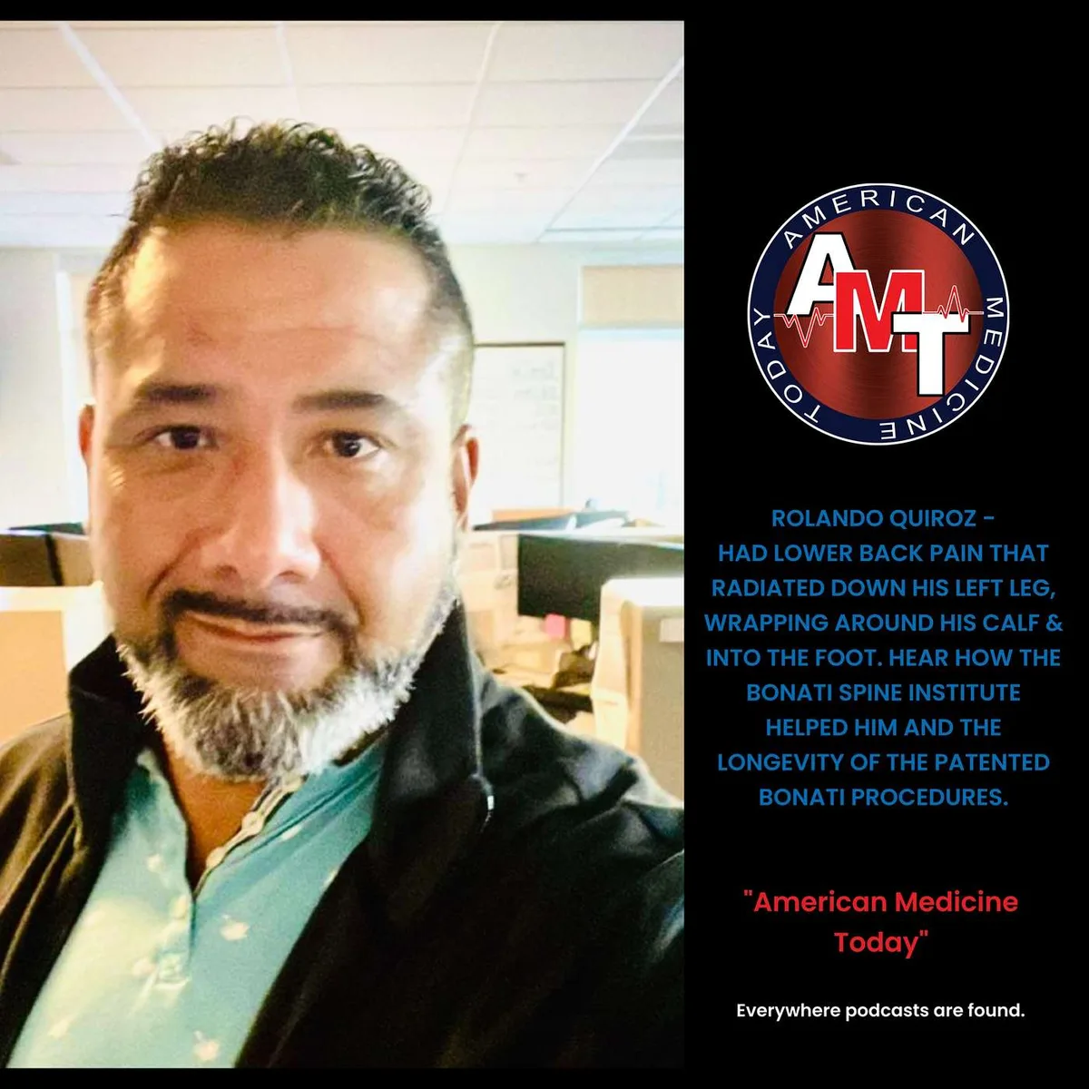 Imagine waking up every morning with excruciating pain that wraps around your leg and makes even the simplest tasks feel impossible. That's exactly what Rolando Quiroz experienced for years, until he found relief through the Bonati Spine Procedures. In this episode of American Medicine Today, Rolando shares his journey from debilitating back pain to reclaiming his active lifestyle, all thanks to Dr. Alfred Bonati's innovative techniques.