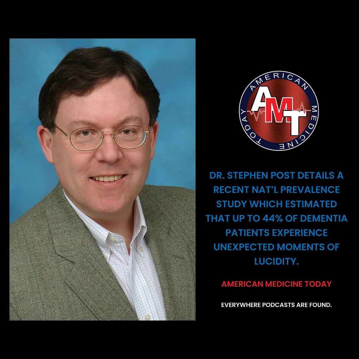 Imagine your loved one, who seems lost in the fog of dementia, suddenly lights up with clarity. This episode of American Medicine Today explores these unexpected moments of lucidity that can profoundly impact both caregivers and those living with dementia. Dr. Stephen Post joins the hosts to share insights from a national study involving 6,000 caregivers, revealing how these fleeting instances bring hope and meaning.