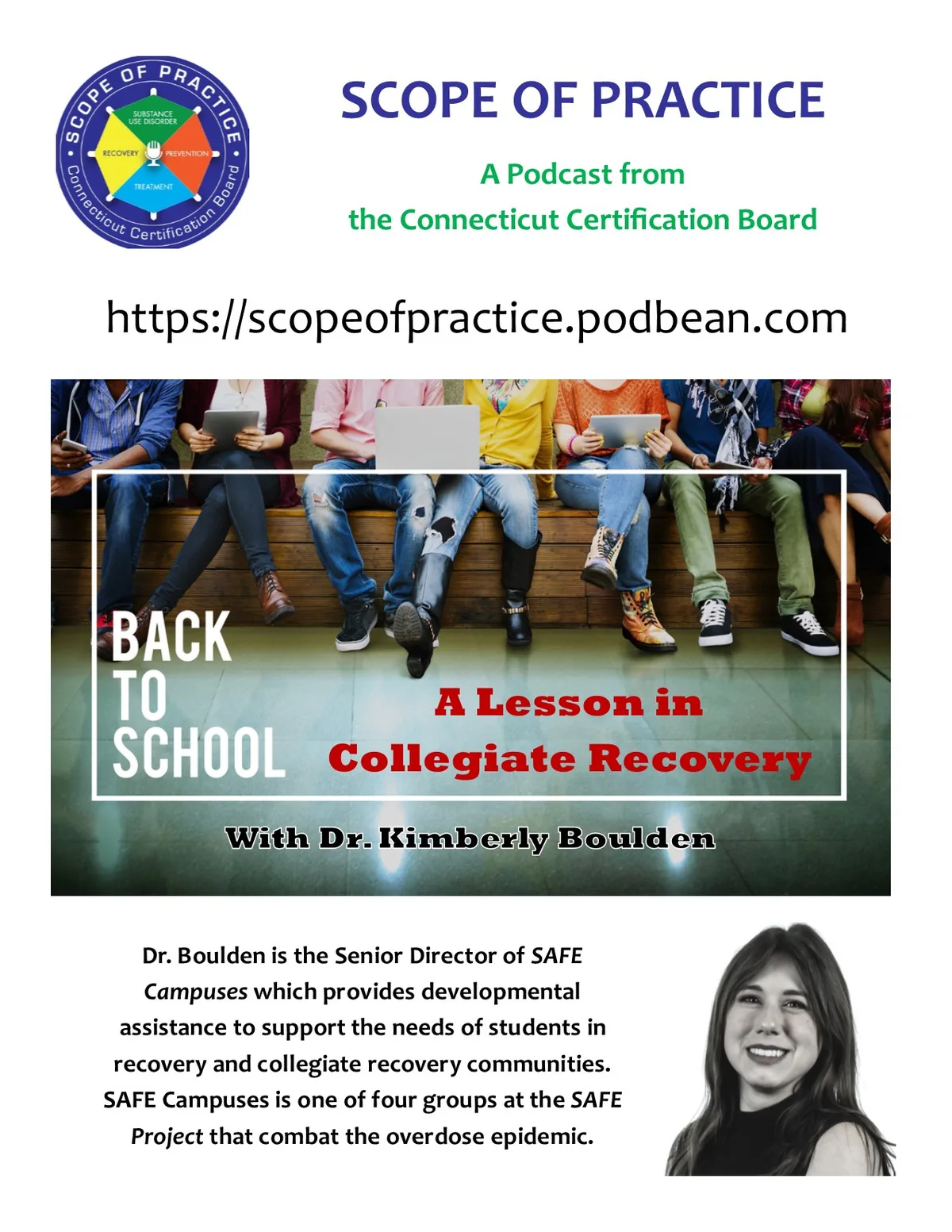 College can be a challenging time for many, but for students in recovery, it presents unique hurdles. In this episode of 'Scope of Practice', host Bruce Elliot Donovan chats with Dr. Kimberly Boulden, Senior Director of SAFE Campuses at the SAFE Project, about the crucial role collegiate recovery programs play in supporting these students. Dr.