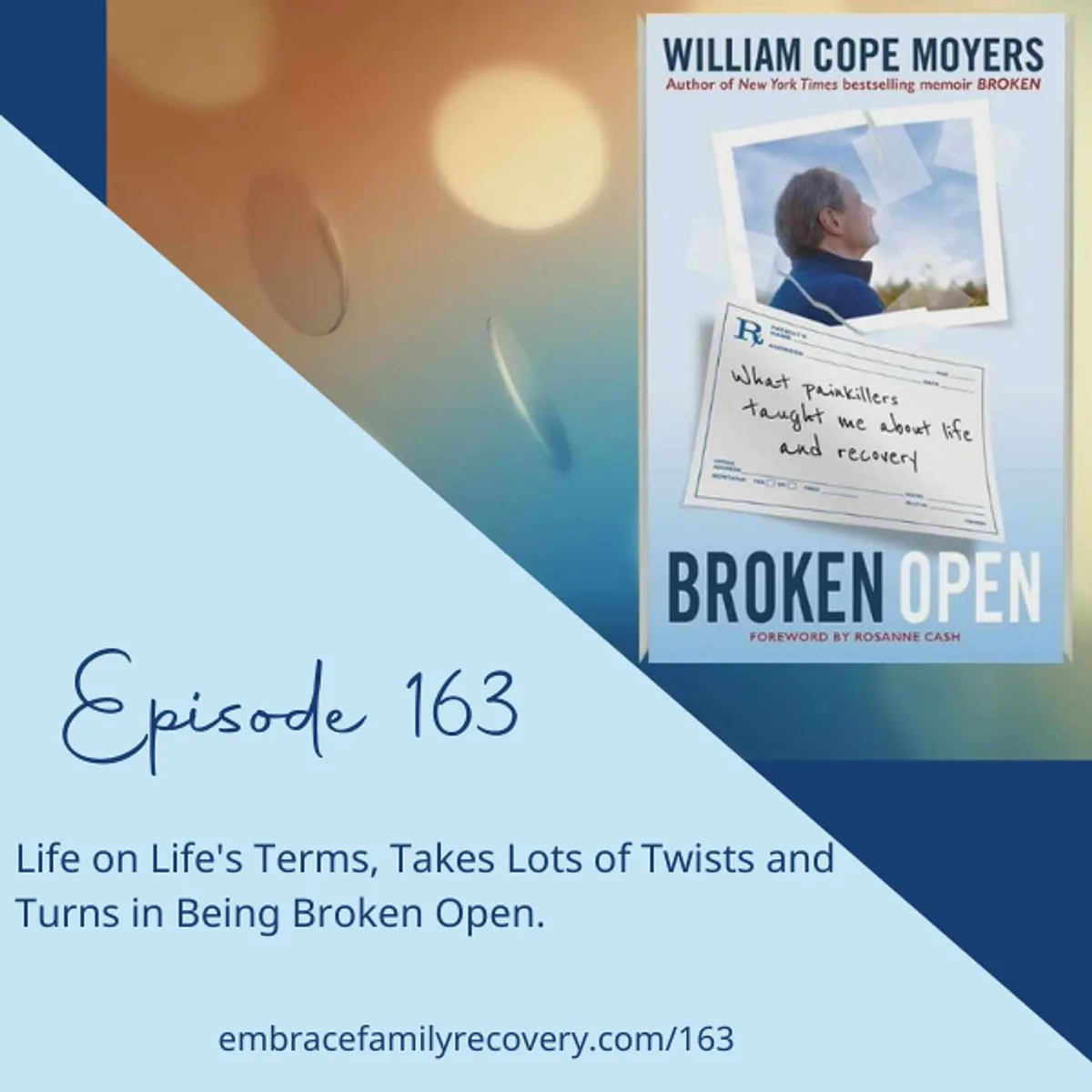 Life is full of twists and turns, especially when it comes to addiction recovery. In this episode of The Embrace Family Recovery Podcast, host Margaret Swift Thompson reconnects with her friend and previous guest, William Cope Moyers. They dive into the ups and downs of William's journey since his book, Broken, was released in 2006. His new book, Broken Open, explores his unexpected return to opiate use after a dental procedure and the ongoing challenges he faced.