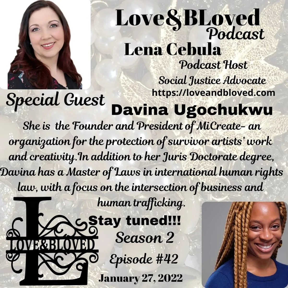 How do you tackle the monumental task of fighting human trafficking and supporting survivors? Davina Ugochukwu, an international human rights attorney, shares her journey and passion in this episode of 'Love&BLoved' with Lena Cebula. Davina has dedicated over a decade to serving the community, with the last five years focused on international human rights law. Her work spans a wide array of critical issues, from supporting special juvenile victims to addressing domestic and sexual violence.