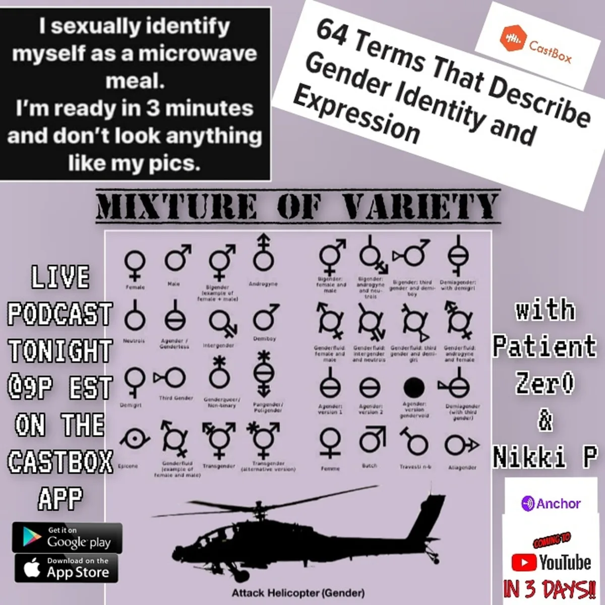 Join Patient Zero on Mixture of Variety as he explores the complexity of gender identity, discussing over 64 genders and societal challenges. Tune in now!