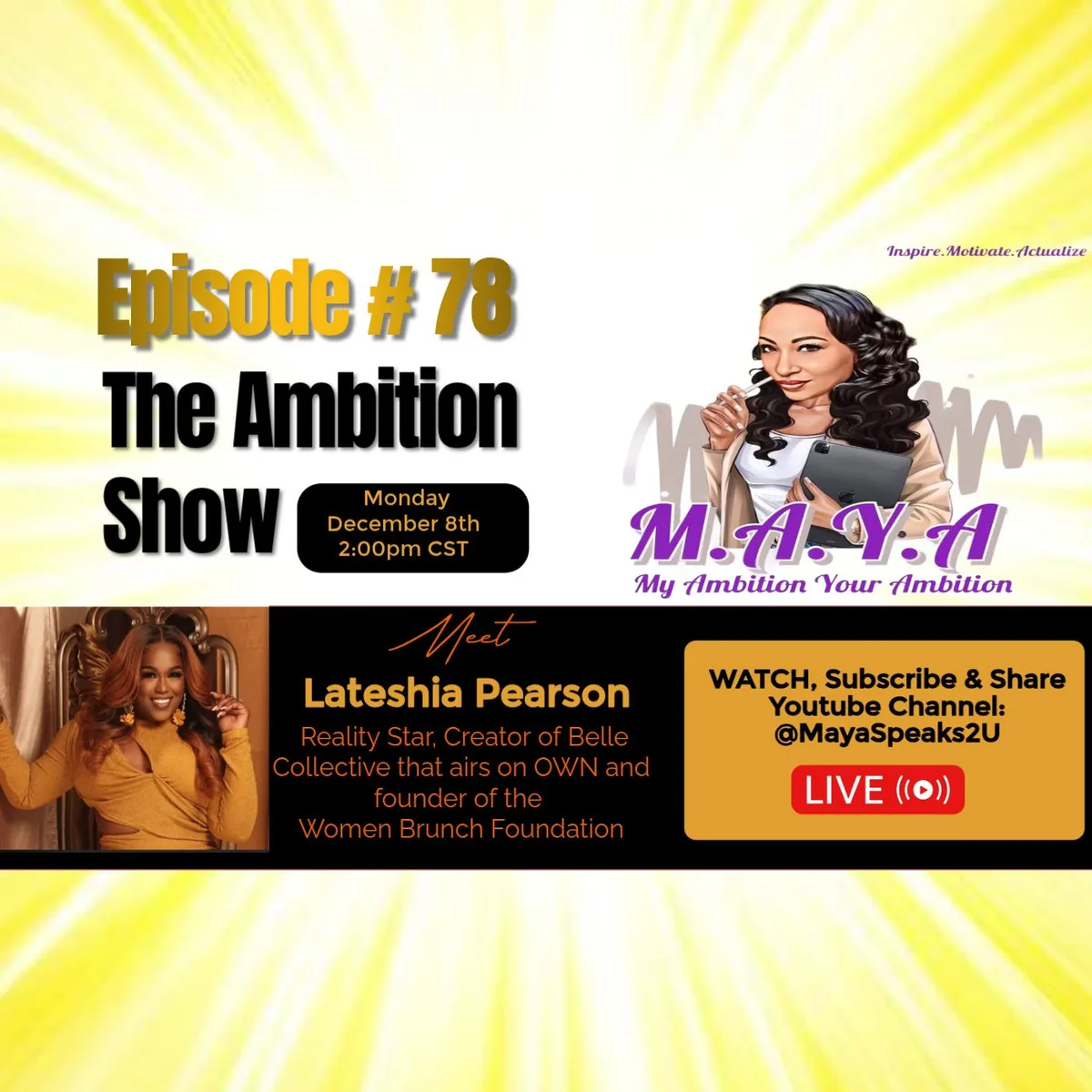 What emotional and inspiring tales of recovery are out there? Get ready to be moved by the real-life account of Lateshia Pearson, a reality star and advocate for women empowerment. In this episode of M.A.Y.A: My Ambition Your Ambition, Lateshia shares her incredible journey from Jackson, Mississippi, where she founded Women Brunch Mississippi to foster sisterhood and resilience among women.