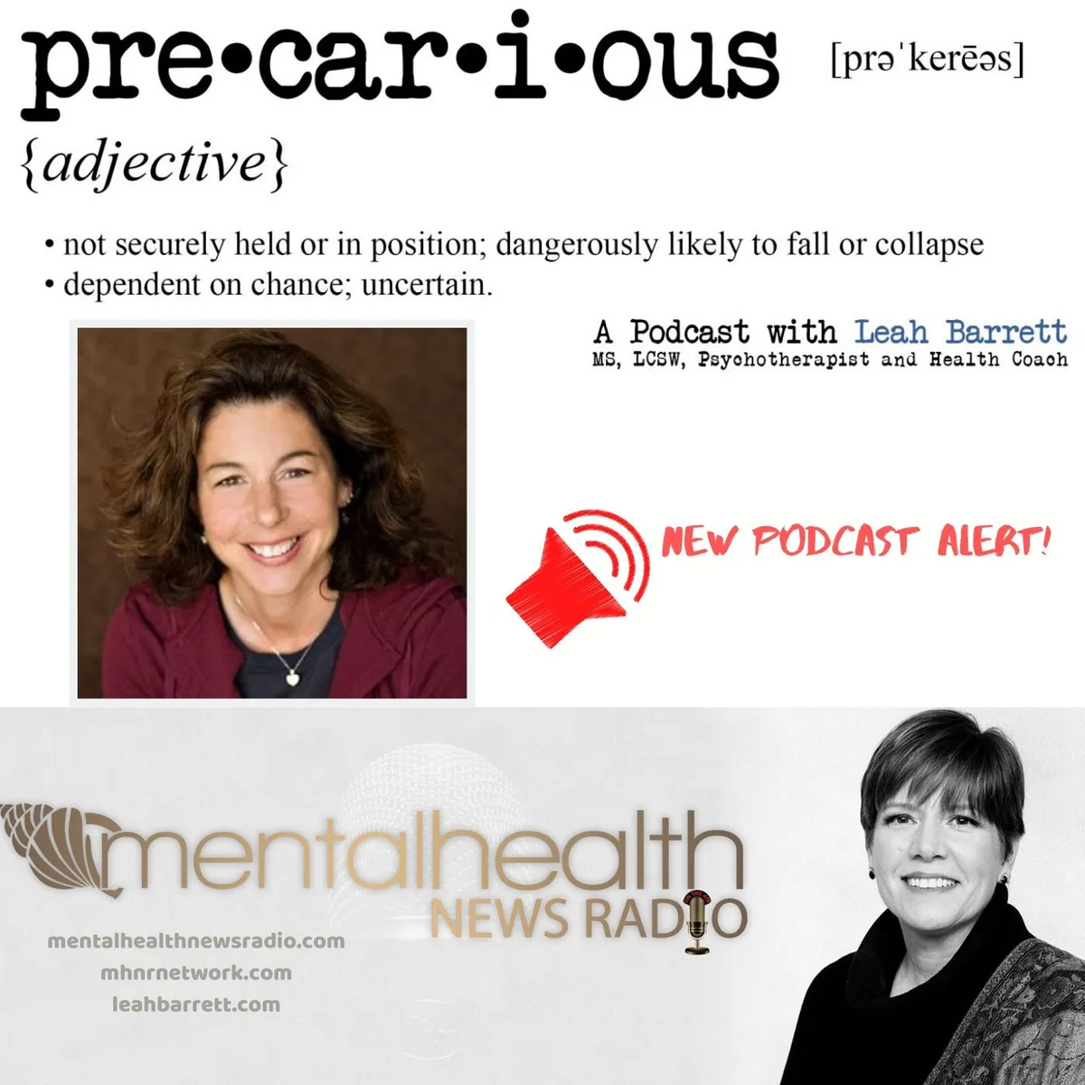 In this episode of Mental Health News Radio, host Kristen Sunanta-Walker introduces Leah Barrett, a licensed clinical social worker and master's level nutritionist whose life experiences have shaped her unique approach to integrating mental and physical health. Leah's new podcast, Precarious, dives deep into the fragility of life and the importance of storytelling as a means to foster connection and understanding. Leah shares her personal journey with recurrent ovarian cancer, a struggle that has profoundly impacted her life and practice.