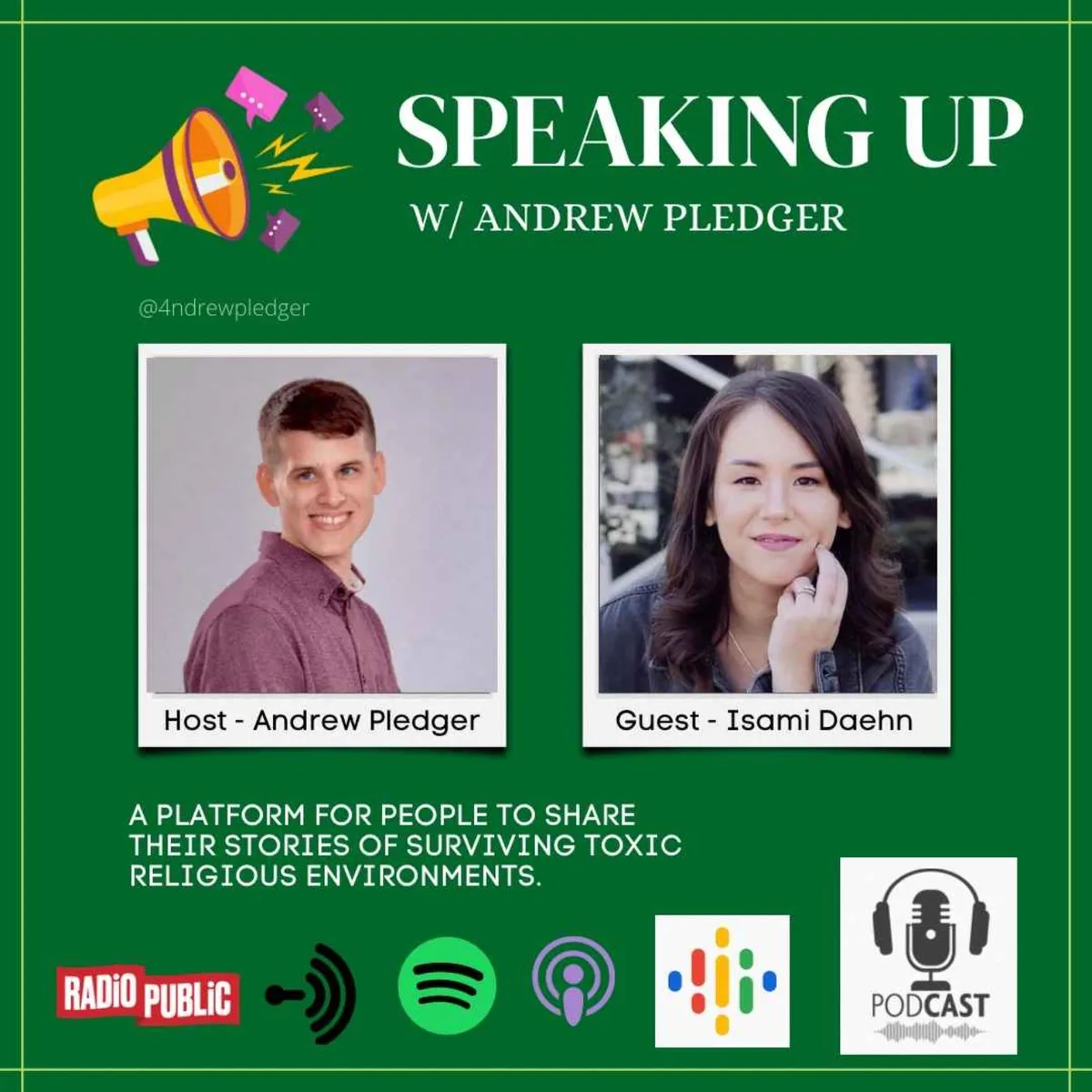 In this episode of 'Speaking Up with Andrew Pledger', Isami bravely recounts her painful past, offering a raw and unfiltered look into the depths of her trauma. Yet, her story is not just one of suffering; it's also one of incredible resilience and strength. Today, Isami channels her experiences into advocacy, speaking at churches, schools, and various venues to raise awareness about trafficking and abuse.