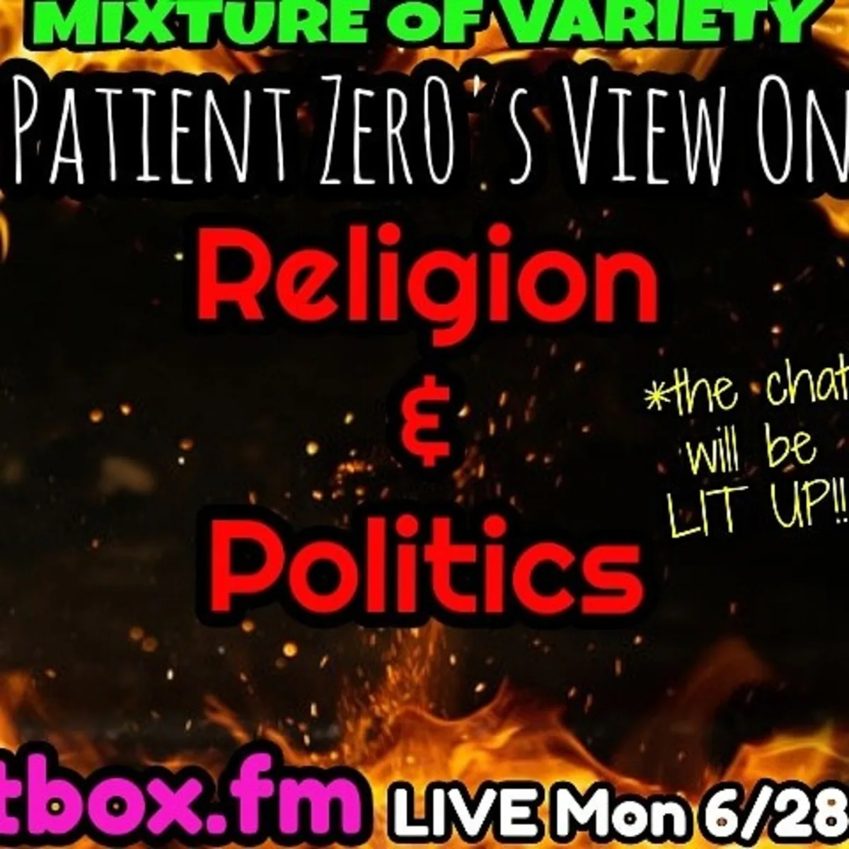 In the latest episode of 'Mixture of Variety,' host Patient Zero delves into a wide array of topics, including religion, politics, and consciousness, providing listeners with an engaging and thought-provoking conversation. The show opens with a vibrant introduction, setting the tone for an evening of dynamic discussion. Patient Zero discusses the dangers of extreme religious beliefs and their potential to cause harm, both physically and emotionally.