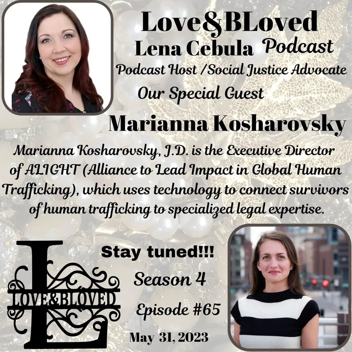 Ever wondered how legal aid can transform the lives of human trafficking survivors? In this episode of 'Love&BLoved', Lena Cebula welcomes Marianna Kosharovsky, the powerhouse Executive Director of ALIGHT (Alliance to Lead Impact in Global Human Trafficking). With over 15 years of experience in human trafficking law and collaboration, Marianna shares her inspiring journey from Wall Street lawyer to leading a nonprofit dedicated to connecting survivors with specialized legal support.